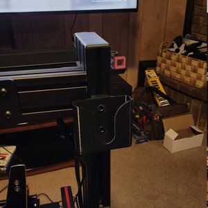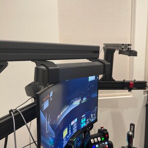 These mounting brackets are designed for the Philips Hue Play lights. The brackets mount to your 8020 sim rig and the lights clip into the mounts. Each mount is secured to the 8020 rig via a t-nut and bolt. In my case I'm using 1 light per monitor and have the lights syncing to the sim. This allows the ambient lighting to mimic the lighting of the sim, which gives me the effect of passing shadows or reflected colors.