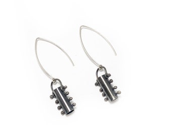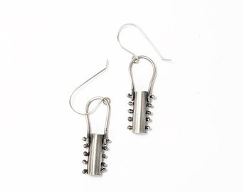 sterling silver tubular kinetic barbell earrings