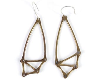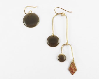 Brass and Silver Geometric Kinetic Earrings