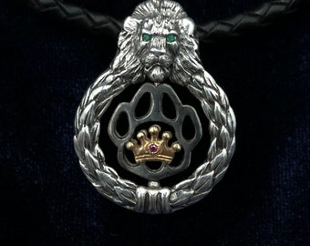 Lion kinetic medallion*Leo zodiac necklace*Lion king*Lion head*Leo*Unique handmade pendant*Spinner*silver 925* leather cord*gemstones*