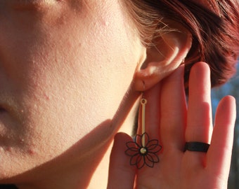 Black mobile earrings, asymmetrical earrings, constallation earring, kinetic jewelry, original woman gift
