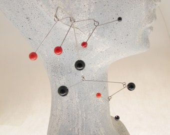 Mono kinetic Earring ''ATOMI'' mobile- kinetic-onyx-red coral-sculpture-movement-unique jewel-abstract-contemporary