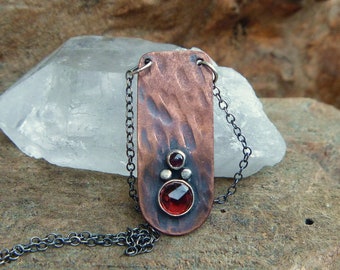 Garnet copper and sterling silver necklace // 17" chain // garnet jewelry // metaphysical // copper jewelry