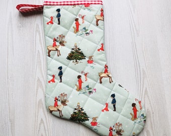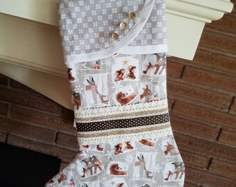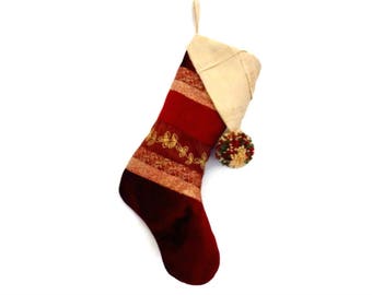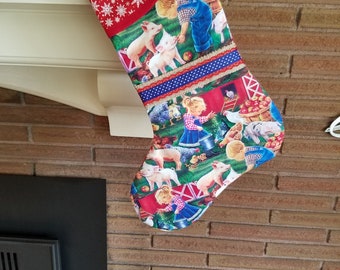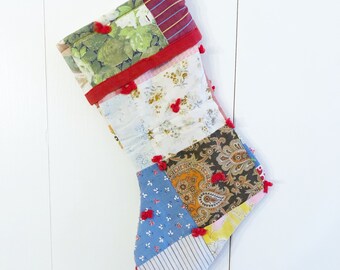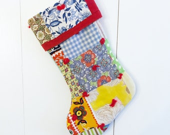 SALE Happy Land Floral Fabric Christmas Stocking