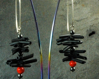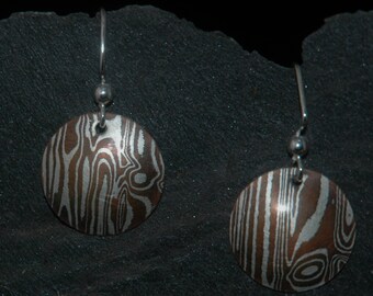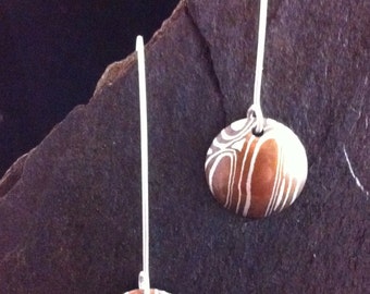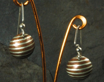 Mokume Gane Copper/Sterling Dangle Earrings, small