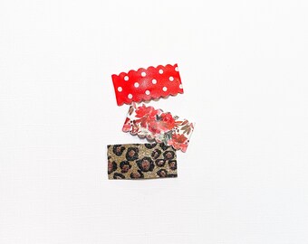 Each snap clip measures approximately 1" X 2" and is handmade in a pet-free and smoke-free environment. Clips are made to order and may vary slightly from the picture shown. Because I hand make each order with focused attention to detail and craftsmanship, please allow 1-2 weeks for shipping.
