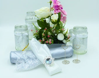 Merino Pom Pom Luxury Decoration 6-Set Wool White Silver Natural Wedding Baptism Christening Christmas Baby Shower Party