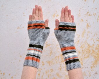 Fingerless Gloves Extra long Arm warmers Crocheted mittens Winter gloves Handmade Gift for her - brown, white, mustard, cinnamon brown