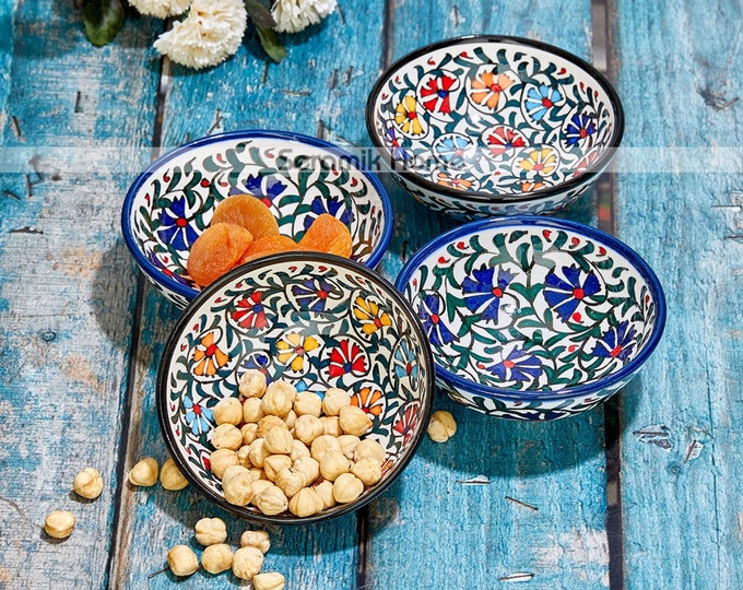4x Decorative Turkish Ceramic Bowl Set 3.9'', Salad Bowl Set, Large Ceramic Bowl Set, Meze Bowl Set, Snack Bowl, Tapas Bowls, 12cm Bowl