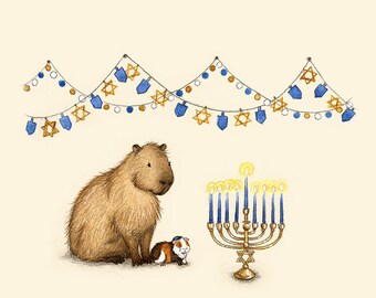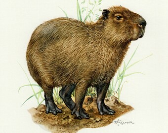 This cute capybara and guinea pig art print is created from my original watercolor and colored pencil illustration: