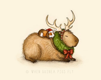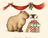 Capy Holidays - Capybara and guinea pig under the Mistletoe for Christmas