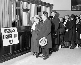 Vintage Comic Shotgun Wedding Marriage License Illustrated Gag Gift Color Print