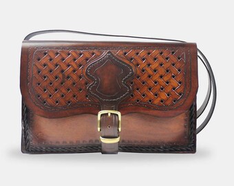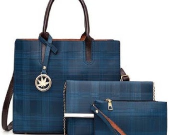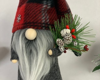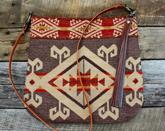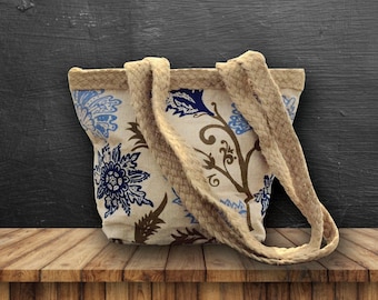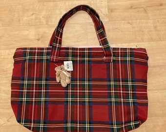 Red and Gray Plaid Handbag / Purse with Jute Webbing Band