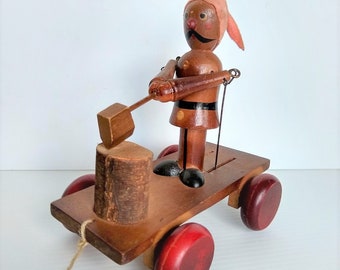Wooden pull toy eco friendly - LITTLE elephant ELLIE