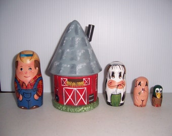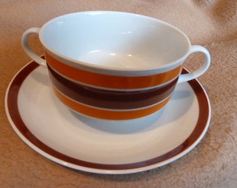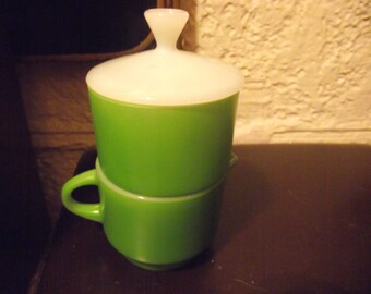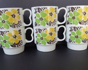 Vintage Coffee Cups Set Green Stacking Ceramic USA Stripes Retro Kitchen