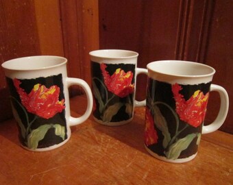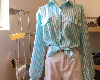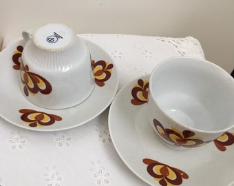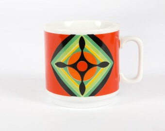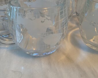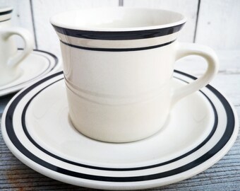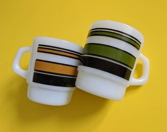 Vintage Coffee Mugs Set Aqua Striped Milk White Glass Retro