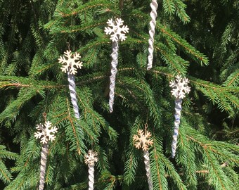 Icicle Ornaments Set Hand Tatted Lace Holiday Decorations Christmas Ornaments Set of 5