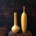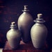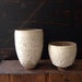 A earthy set of 3 wheel thrown stoneware vases in a rustic crater glaze I call Beachstone White.