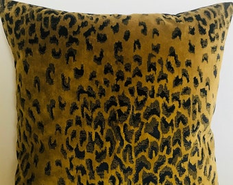 Designer Leopard pillow cover in a beautiful shades of Gold and Black. Decorative leopard pillow cover in velvet. Leopard Decorative pillow By Willa Skye Home