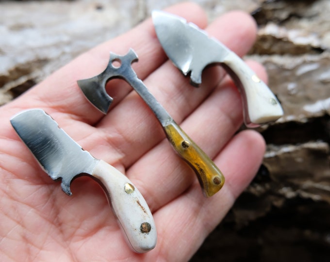 Custom Made 3 Pcs Mini Axe Ram Horn Handle Mini Cleaver Mini Knife Deer Horn Handle With Leather Sheath