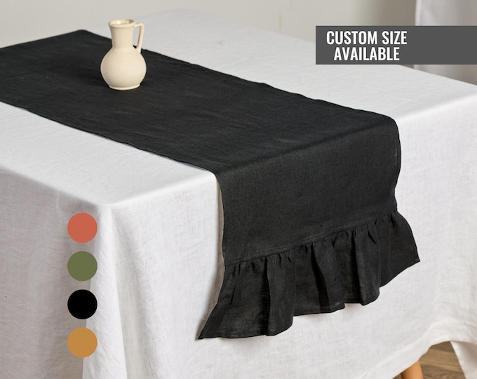 Camino de mesa negro - Camino de mesa rústico con volantes - Varios tamaños y colores disponibles