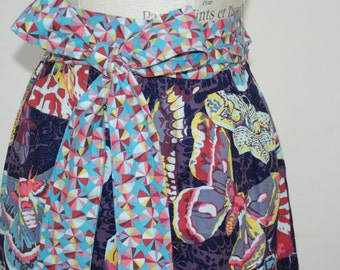 Here is a beautiful full apron, made from a waterproof, laminated 100% cotton fabric and a coordinating 100% cotton fabric. This apron is the perfect combination of practicality and style. The eclectic color palette is just beautiful and perfect is you love that modern vintage style.