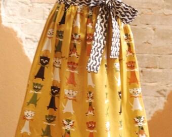 This is a limited edition apron. It is one size fits most. It is 33 inches long from the top of the apron to the hem. It slips over the head and the ties are long enough to wrap around to tie in the front or bow tie in the back. If you need this custom sized, please convo me. I can make one based on measurements provided.