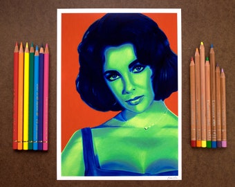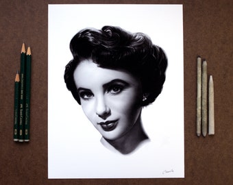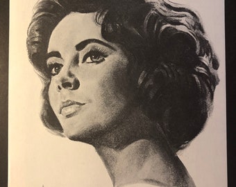 Vintage Elizabeth Taylor Portrait Print - Butterfield 8 - Nicholas Volpe Charcoal Illustration