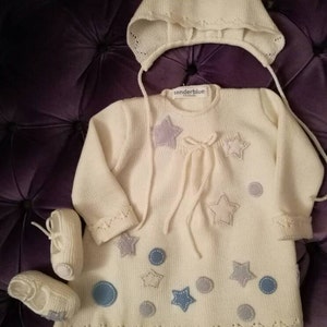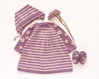 Knitted baby sweater,cap, baby girl, in pink with felt flowers. 100% wool. READY to SHIP in size Newborn.