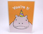 1st Birthday Card - Kids First Birthday Greeting Cards - Hippo