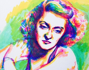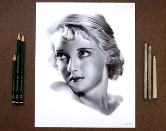 Vintage Bette Davis Portrait Print - Jezebel - Nicholas Volpe Charcoal Illustration