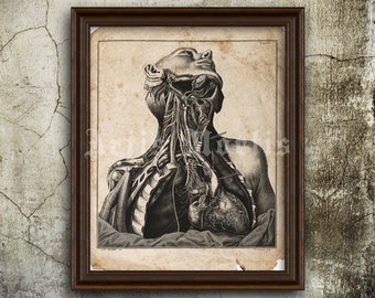 Vintage Man Breathing Illustration Chart - 1924 Illustrated Anatomy Medical Book Plate