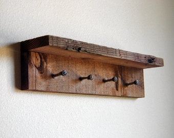 I LOVE this coat rack!!! It looks amazing and is crafted with top notch quality. The rail road spike are absolutely perfect for hanging coats, purses, hats, and anything else. The shelf is just long enough so you store mittens or any other decorative things. This item shipped on time and I mistakenly shipped it to the wrong address but was able to call the makers and explain what had happened and they corrected without any issues or extra cost. Thank you guys for making such a great product!