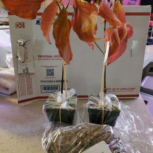 Both young trees arrived as described (shipping took a little longer than I expected, but not unreasonable), dormant and healthy. Both are currently potted in a greenhouse awaiting transplant into the landscape, and both are beginning to leaf out. I would order from this company in the future without hesitation. Great job!