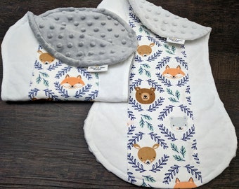 Woodland Animals Baby Bib - Unisex Bib with Snaps
