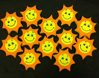 Sunshine Cookie Favors, Smiley Face Sunshine Cookies, Summer Theme Cookies for Birthday Parties, Congrats Cookie Gift, Get Well Gift