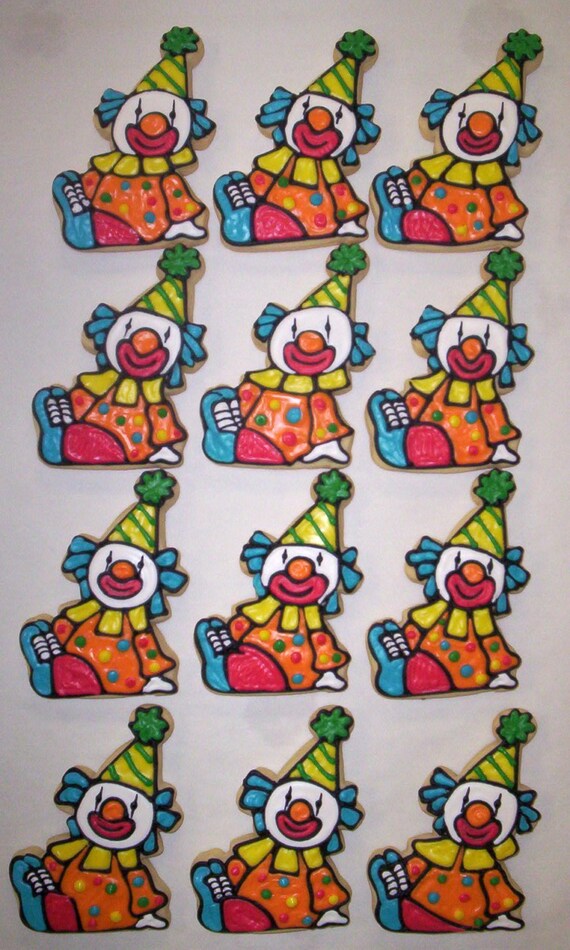 Circus Clown Decorated Sugar Cookies, Birthday Party Favors, Carnival Theme Cookie Favors, Children Party Treats, Custom Cookies