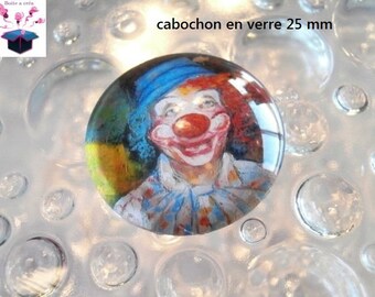 1 cabochon clear 25 mm clown theme