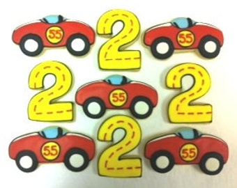 Race Car Cookie Favors, Number Cookies for Birthday, Cute Race Theme Cookies, Child's Race Car Birthday Cookies