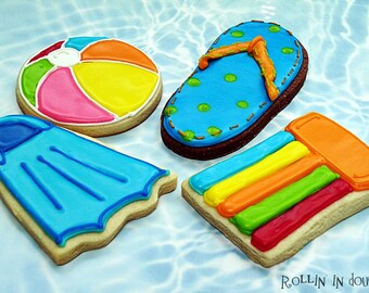 Pool Party Cookie Favors, Swimming Theme Cookies, Beach Theme Cookies 1 Dozen