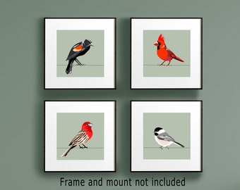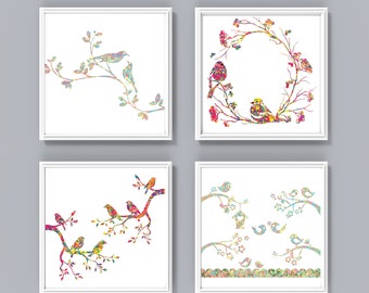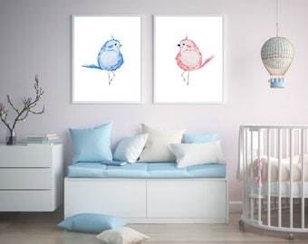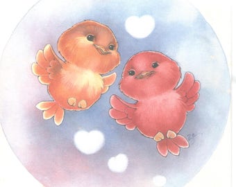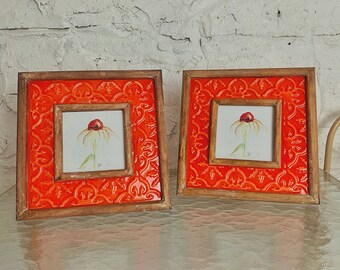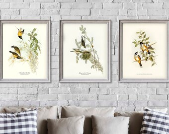 Vintage Bird Print Set Framed Frank Massa Birds Orange Frame Pair