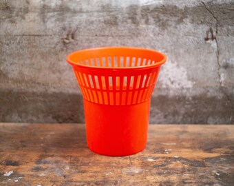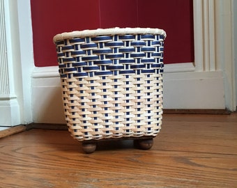 Vintage Trash Can White Plastic Waste Basket Garbage Pail Retro Flowers