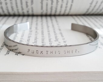 Hand Stamped "FUCK THIS SHIT." Stainless Steel Cuff Bracelet - Hand Stamped Jewelry - Funny - No Fucks Given - Badass - Silver - Give Back