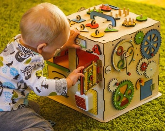 Busy board cube 5-sides + Night light, Sensory board, Busyboard, Activity board, educational toy Montessori toys wooden toddler toy board
