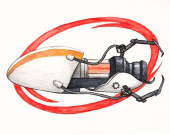 Portal gun and companion cube - set of 2 original watercolour artwork