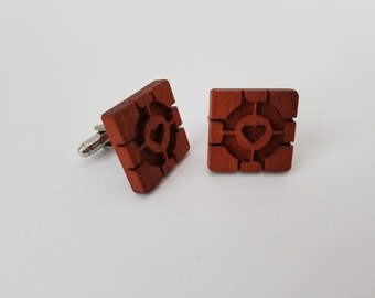 Portal Companion Cube Wood Cufflinks