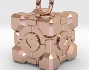 Rose Gold plated Companion Cube Necklace Pendant Charm | Portal 2