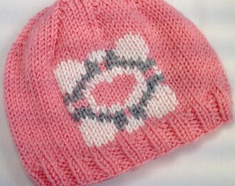 Portal inspired Baby Hat, 9-18 months, pink