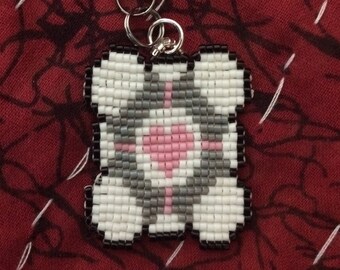 Portal companion cube beaded keychain