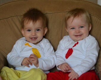 Twin set of Crayon "Create and Destroy" baby Bodysuits , Great Shower gift for Twins or siblings